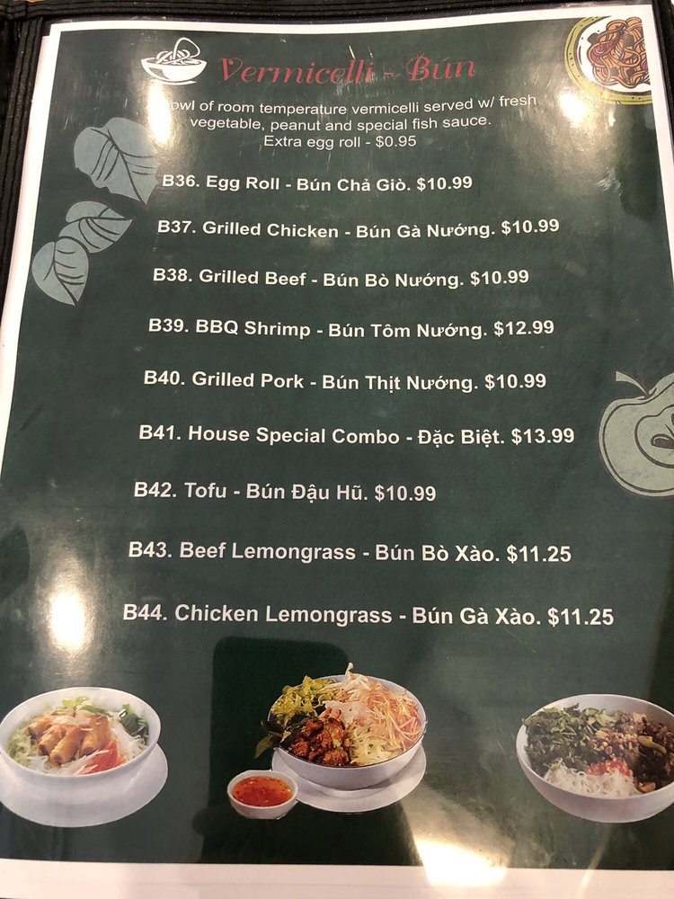 Grilled bbq pork, vermicelli,lettuce, cucumber, cilantro..
